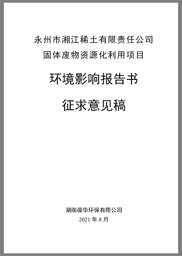 永州市湘江稀土有限責(zé)任公司 固體廢物資源化利用項(xiàng)目 環(huán)境影響報(bào)告書 征求意見(jiàn)稿